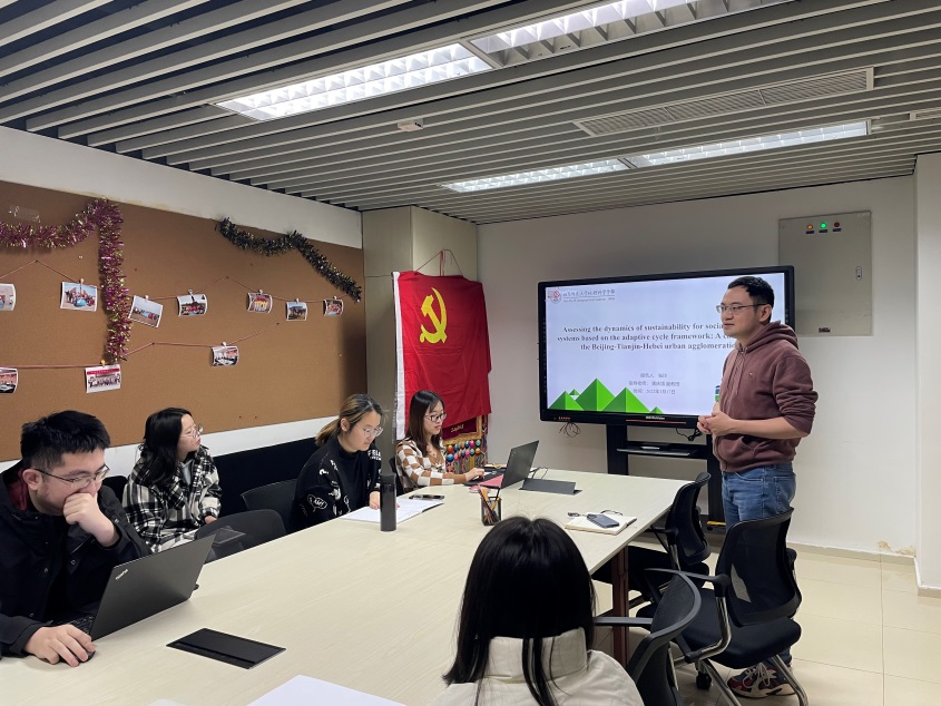 张玲同学汇报的题目为“基于适应性循环的人与环境系统可持续评价”,她以京津冀城市群为研究区,综合运用突变理论数学模型和适应性循环理论模型评估了2000-2017年京津冀城市群的可持续性发展状态,并根据结果划分时间节点和重点区域,将京津冀地区的城市进行三种类型的划分。目前该报告的内容已经发表于《Sustainable Cities and Society》上,研究发现该研究区的城市经历了两个循环阶段,结果表明京津冀可持续发展主要与环境变化有密切关系。张玲同学的汇报结束后,与会师生就汇报内容展开热烈讨论。