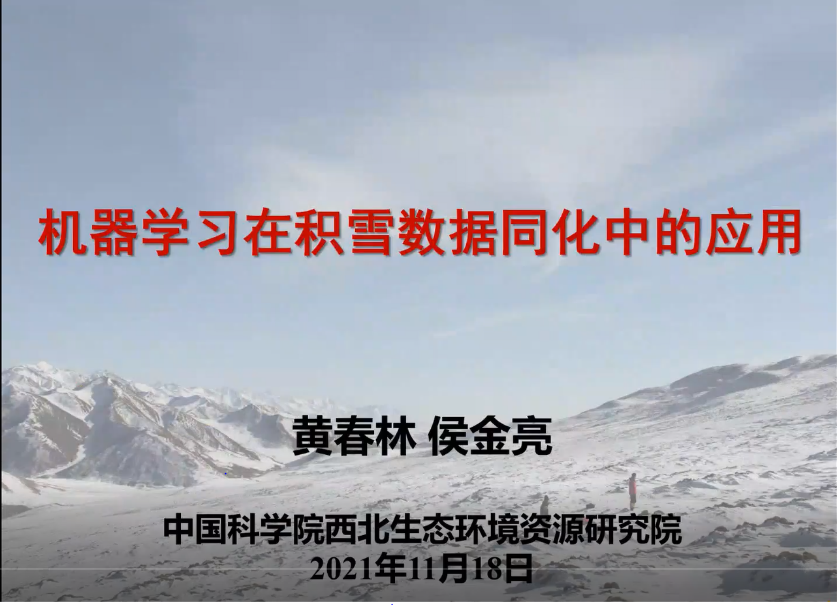 2021年11月18日上午,成功举行了资源科学前沿系列讲座第17期线上讲座,中国科学院西北生态环境资源研究院黄春林研究员带来了“机器学习在积雪数据同化中的应用”的精彩讲座。徐同仁老师主持了本次讲座,刘绍民、柏延臣、蒋玲梅教授以及来自学部90余位研究生参加了本次讲座。