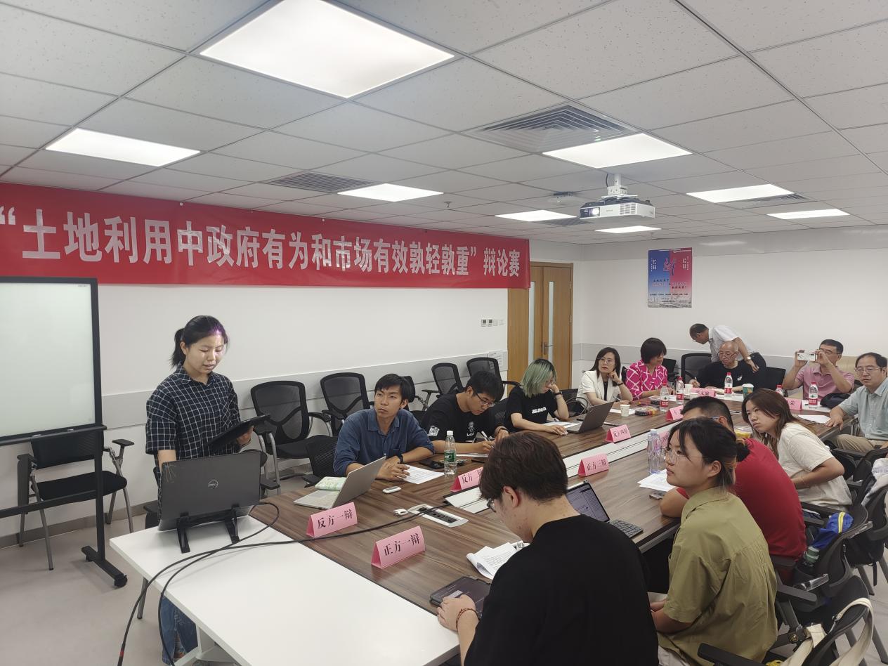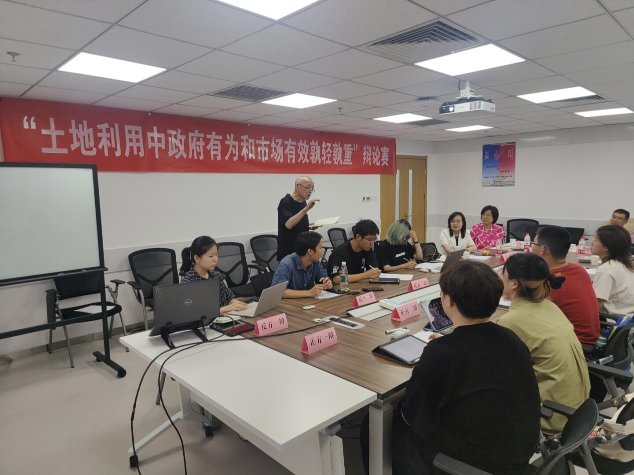 精彩的辩论环节之后,与会专家老师对本场辩论赛的内容及辩手表现进行了点评:政府和市场的关系问题是一个世界性的问题,既是经济理论研究的焦点,也是各国经济发展实践中的难点。鉴于我国土地制度和土地资源的基本国情,土地资源本身是一种特殊的“商品”,这就更需要处理好土地利用中政府与市场的关系。只有厘清政府作用的边界、消除“政府万能或市场万能”等观念,找准土地利用中政府和市场相互补位、协调配合的结合点,推动土地利用中“有效的市场”和“有为的政府”协同发力,才能实现1+1>2的效果。