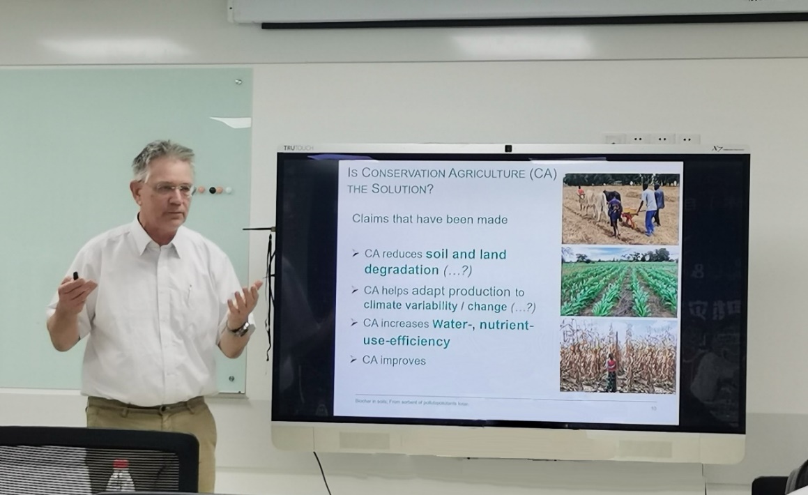 Jan Mulder 教授从当前世界面临的粮食危机问题以及全球气候变化背景下土壤退化碳损失切入,介绍了Biochar(生物碳)在非洲农田中的应用研究成果。从农户角度出发,研究人员提出了一种可行性高、投入较小的生物碳生产方式。Biochar是一种作物增产和土壤固碳的可行方法,尤其对于热带亚热带酸性土壤区。Jan Mulder教授在报告中分享了他近年来的实验研究结果,Biochar在非洲酸性土壤中表现出了良好的土壤改良作用,并可显著提高作物产量。
