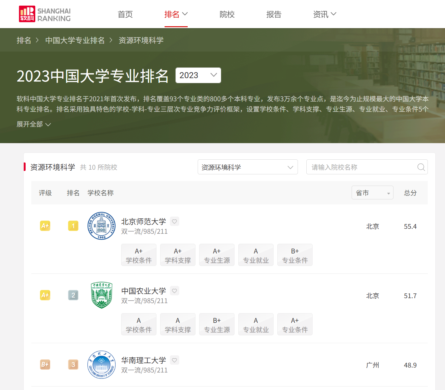 近日,“2024软科中国大学专业排名”正式发布。今年会官网资源环境科学本科专业继2023年荣登榜首后,再度以全国第一的成绩领跑,连续两年居专业排名榜首位!