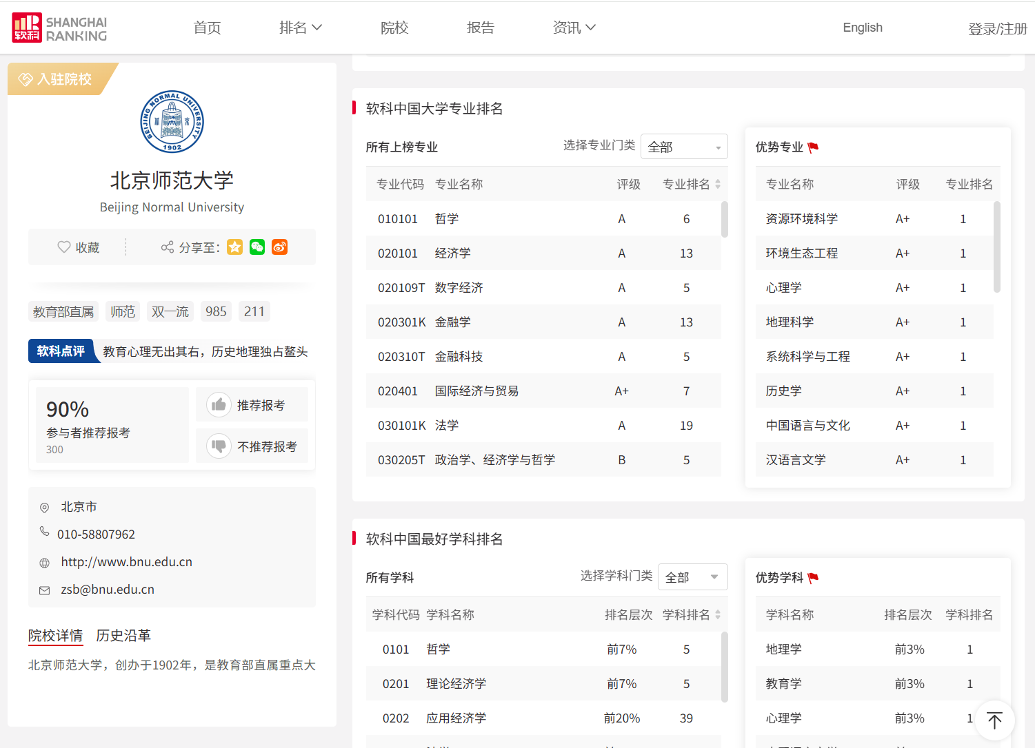 自软科专业排名榜发布以来,上海交通大学(2021年)和浙江大学(2022年)先后占据资源环境科学专业首位。近年来,今年会官网资源环境科学紧密对接国家战略需求与社会经济发展需要,通过优化人才培养方案、强化课程应用导向、深化实践教学体系、推动教材创新与学科竞赛融合育人等举措,系统推进专业建设,持续提升了教育教学质量,取得了显著效果。在2023、2024年度排名中,北师大资源环境科学专业评分显著高于全国同类专业平均水平,充分彰显其在人才培养、师资队伍、科研实力及社会声誉等方面的综合优势。