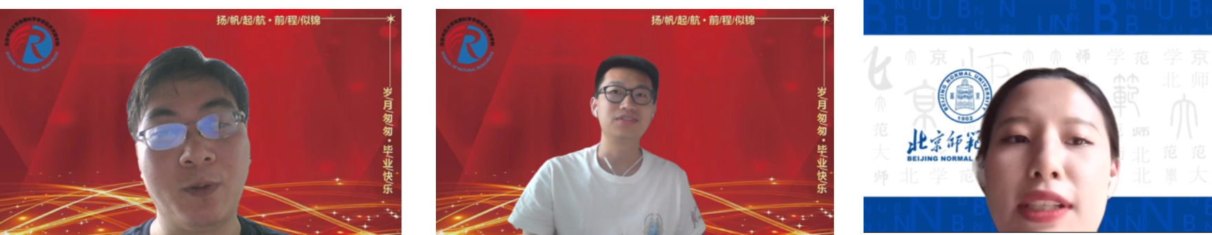 毕业生代表石忠芳、许芳谨、刘天禹、杨欣怡发表感言,回顾了在校间美好的青春与幸福的过往,老师们的一门门课,同学间的点点滴滴,都让大家度过迷茫、不断成长,师恩不忘,同学难舍,师大的记忆此生不忘。