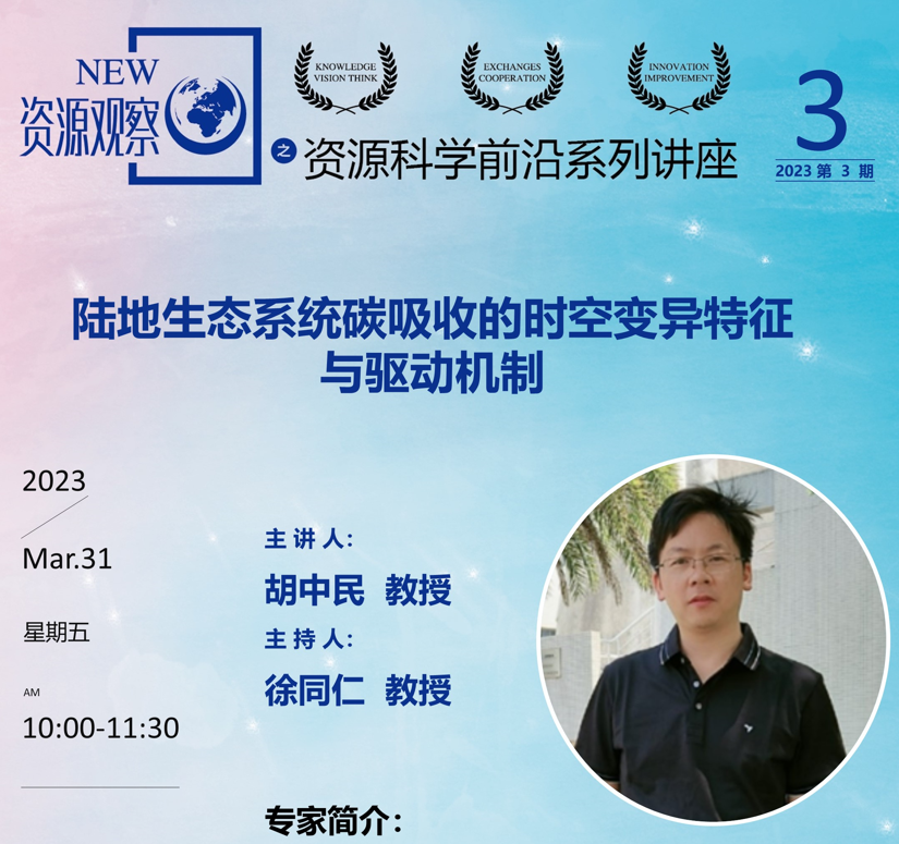 资源科学前沿系列讲座第3期在京师科技大厦B座933会议室顺利召开。讲座由徐同仁教授主持,邀请了海南大学胡中民教授作“陆地生态系统碳吸收的时空变异特征与驱动机制”主题报告,学部刘绍民教授、徐自为高工等数十名校内师生参加了学术交流活动。
